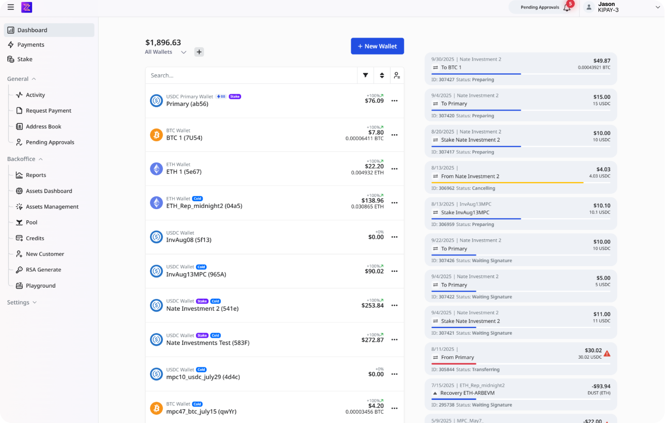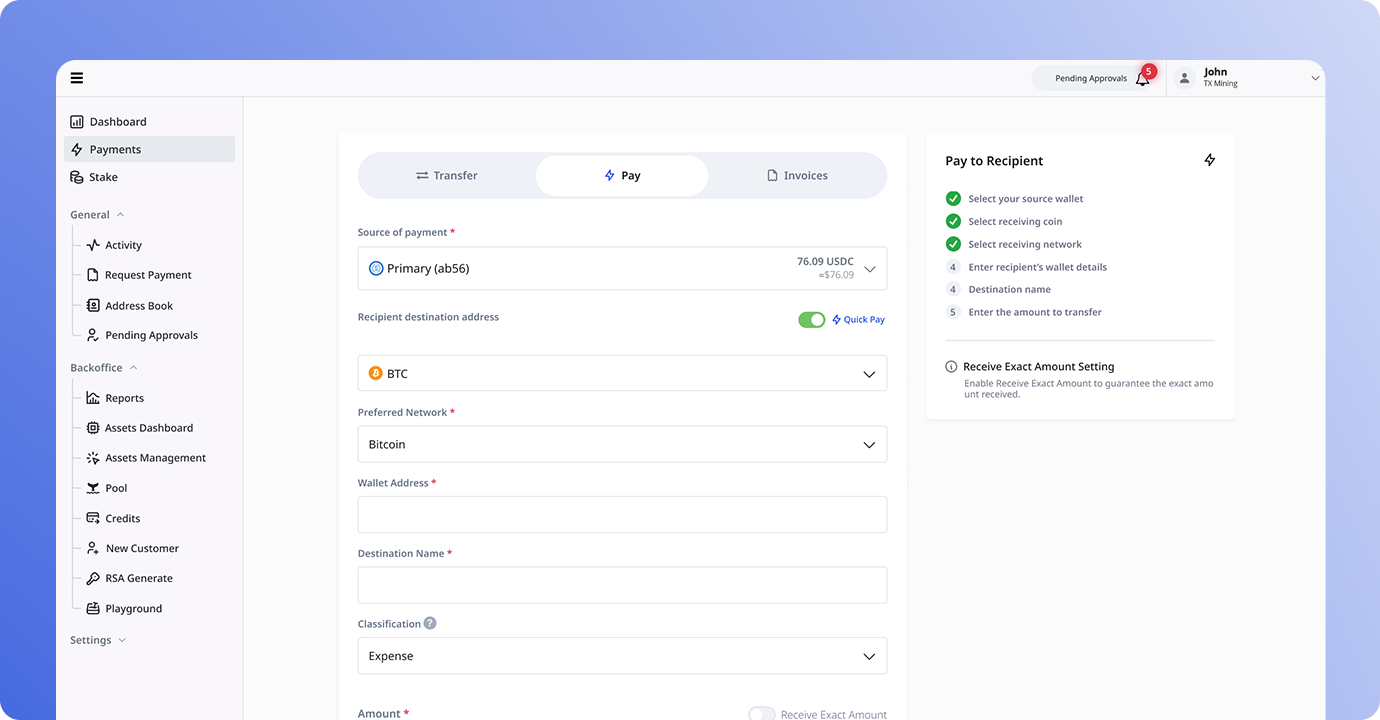 One platform for mining operations, stablecoin banking, MPC wallets, credits cards, and digital asset management that is secured with institutional controls and automated workflows.
